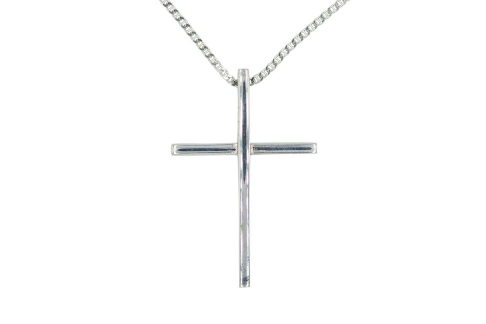 Σταυρός λευκό χρυσός 14 καρατίων λουστρέ φινίρισμα χειροποίητος.
