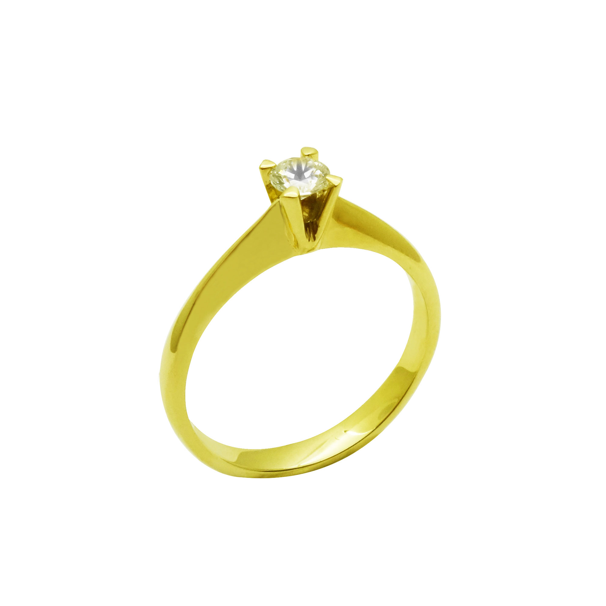 Μονόπετρο δαχτυλίδι κίτρινο χρυσό 14 καρατίων με κεντρική πέτρα ζιργόν.