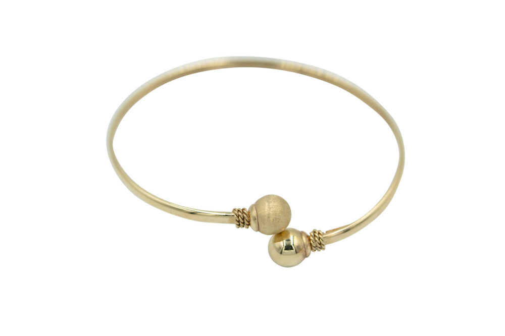 Χειροπέδα γυναικεία κίτρινο χρυσό 14 καρατίων με ματ και λουστε μπάλες.